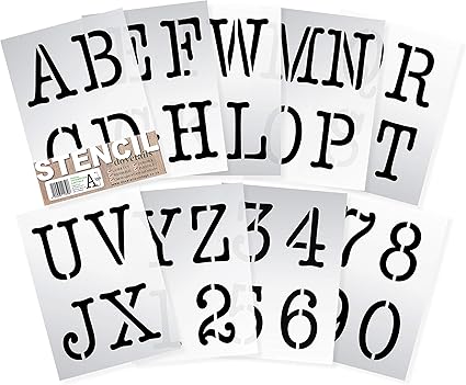 dovetails vintage letter stencils 100mm tall 4 inch large typewriter capital letters reusable stencil complete alphabet numbers on 9 separate sheets of 295 x 200mm tough flexible plastic mylar amazon co uk