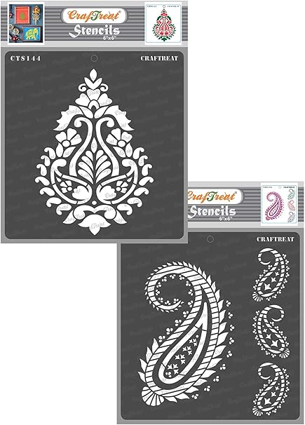craftreat stencil paisley damask and paisley border stencil 2 pcs reusable painting template for home decor crafting diy albums scrapbook and printing on paper floor wall wood 6x6 inches