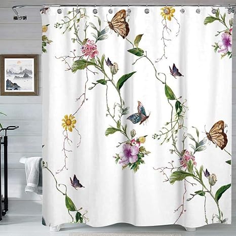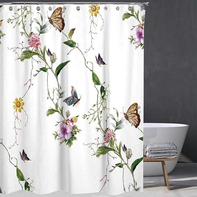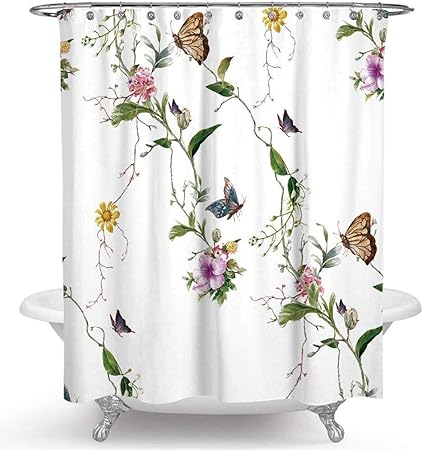 amazon com floral shower curtain colorful flowers vivid butterflies spring theme boho curtains for bathroom fabric bath decor with hooks 59x71 10 kitchen dining