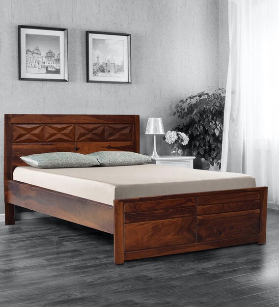 buy barcelona queen size bed with storage in honey finish by hometown online transitional queen size beds beds furniture pepperfry product