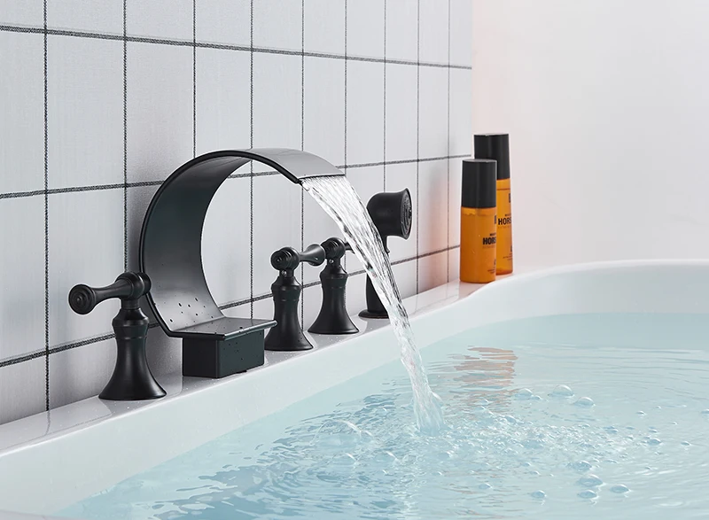 bathtub faucet mixer basin tap wide spout waterfall tub bathroom faucet hot and cold water mixer with hand shower bath faucet bathtub faucets aliexpress