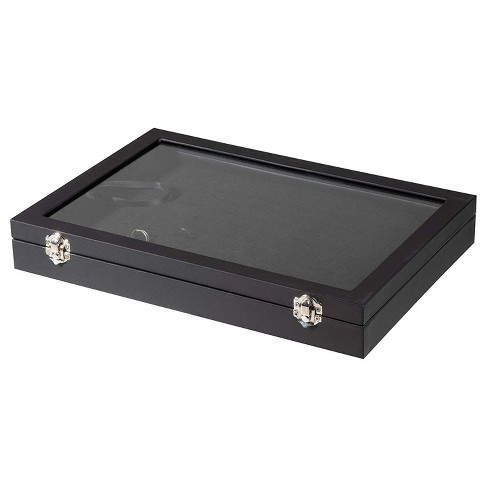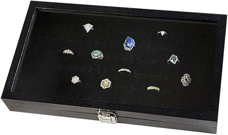 amazon com huji glass top ring display showcase with velvet insert liner jewelry organizer 1 72 slot case home kitchen