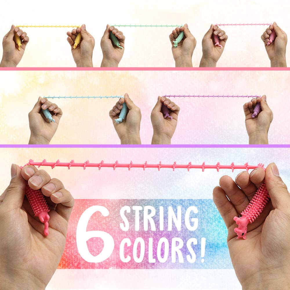 small fish sensory stress relief and fidget therapy unicorn stretchy string toys for kids and adults 6 pack strings set anti anxiety fidgeting and relaxing best for boys and girls with autism