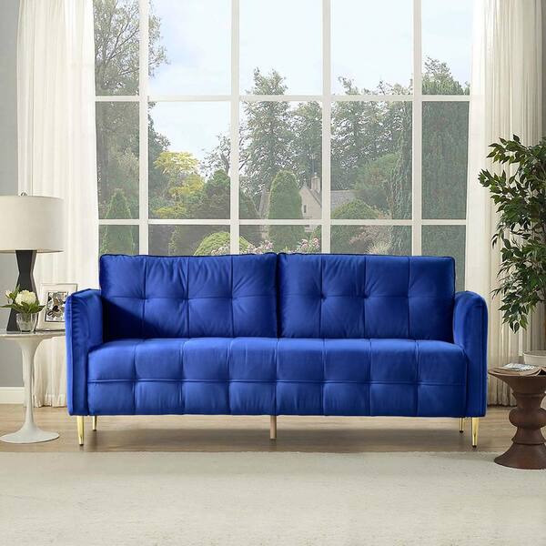 boyel living graceful 76 in blue velvet 2 seat futon loveseat sofa with gold legs ows wf ntl300 the home depot