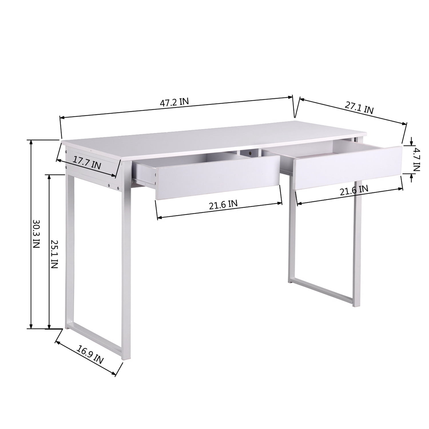 furniturer office desk with 2 drawers computer writing study table high glossy white walmart com walmart com