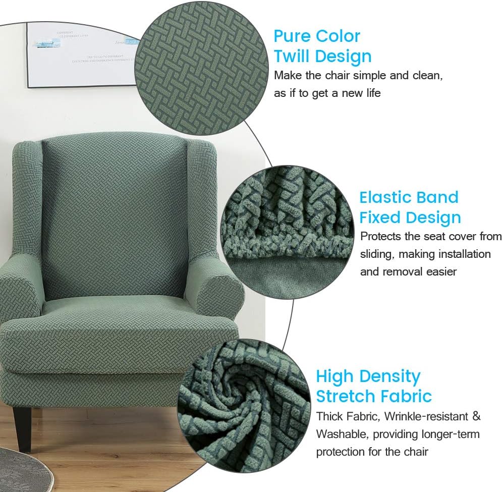 amazon com turquoize stretch wing chair slipcover wingback armchair chair sofa cover furniture protector 2 piece with elastic bottom anti slip foam kids jacquard fabric small checks wing chair biscottibeige home kitchen