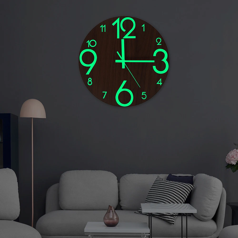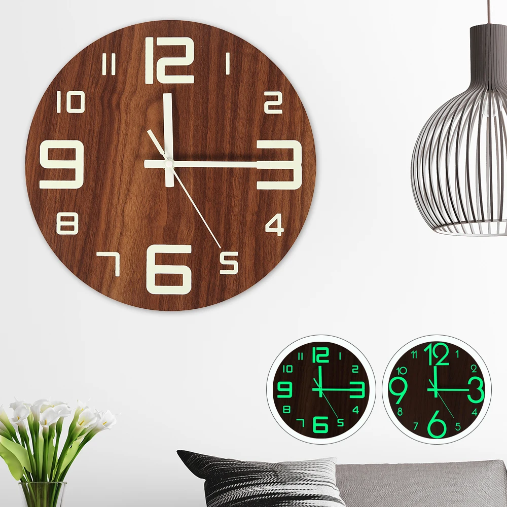 new wooden wall clock luminous number hanging clocks quiet dark glowing wall clocks modern watches decoration for living room wall clocks aliexpress