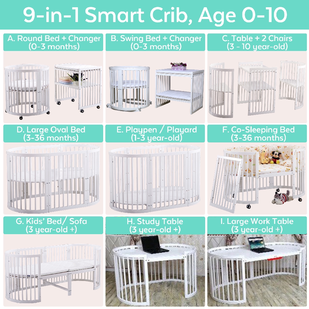 9 in 1 convertible baby crib infant round bed side bed oval cot diaper changer playard sofa desk with mattress shopee singapore