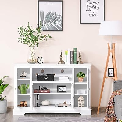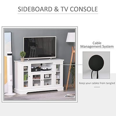 buy homcom modern kitchen sideboard buffet server cabinet with glass doors tv stand console table for living room white online in indonesia b08yn1zytj