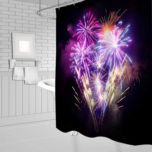 amazon com jagfhhs shower curtain colorful fireworks decoration home bath curtain bright night sky design curtain polyester waterproof fabric with 12 rust proof hooks 72 x 72 inches home kitchen