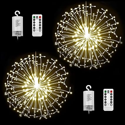 amazon com stillcool firework lights 2pcs 150 led copper wire starburst lights 8 modes battery operated fairy lights with remote waterproof outdoor hanging lights for decor patio garden halloween christmas party home improvement