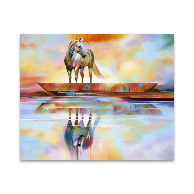 hdartisan wall art painting canvas picture animal print horse reflection picture for living room home decor no frame painting calligraphy aliexpress