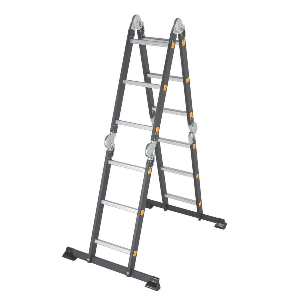 mac allister 4 section aluminium folding ladder with platform 3 30m combination ladders screwfix com