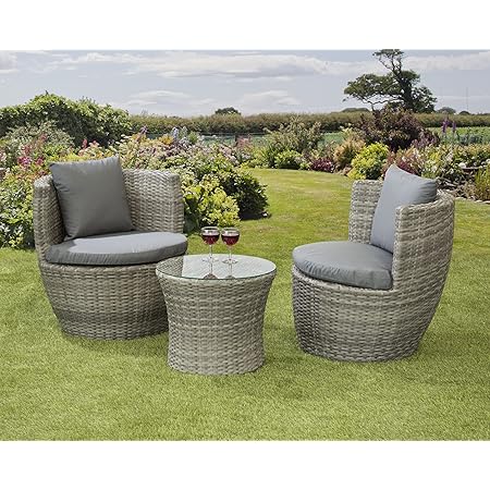 oren athens 2 seater bistro set light brown grey weave with grey cushion amazon co uk garden outdoors