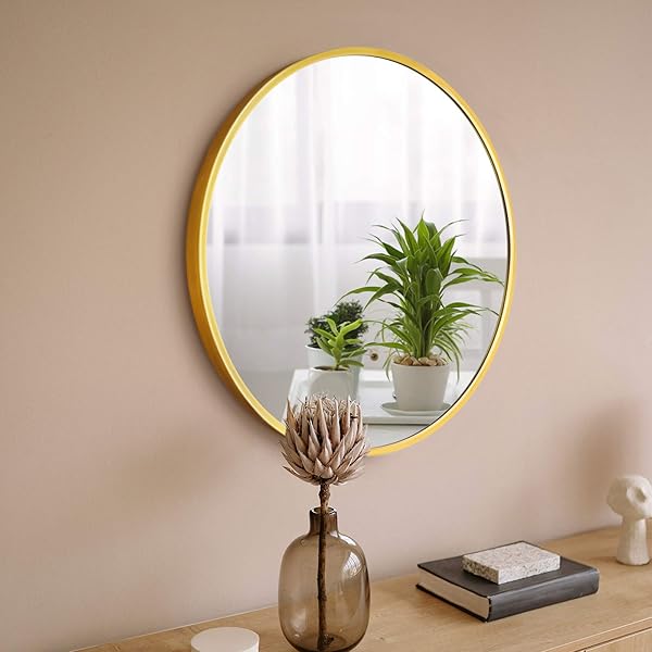beauty4u 16 wall circle mirror large round gold farmhouse circular mirror for wall decor big bathroom make up vanity mirror entryway mirror amazon sg home