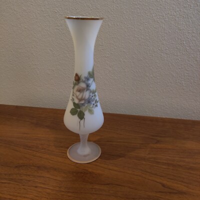 gorgeous bristol glass vase the vase is a taupe color tan with a slight hint of green finely detailed bird sitting on a tr vase art glass vase hand painted