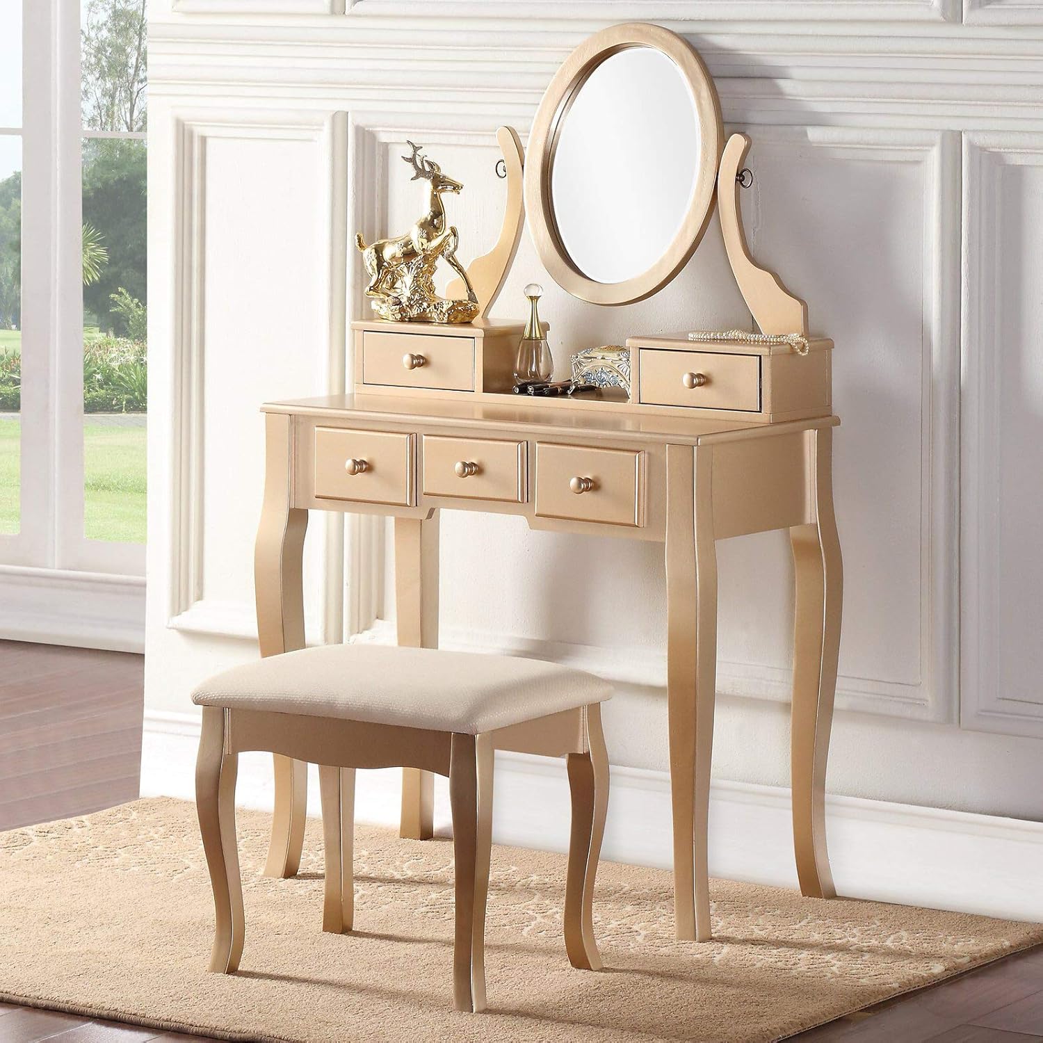 tmee classic white wood dressing table stool set with adjustable mirror drawer makeup desk for women girls bedroom dressing room home kitchen dressing tables