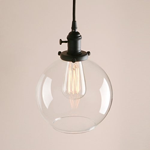 pathson black pendant light with globe round glass shade metal base cap and adjustable textile cord industrial style retro hanging lamps for dining room kitchen island walmart com walmart com