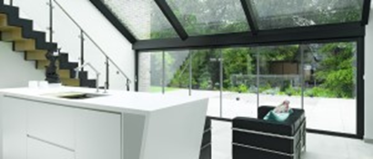 black anodized aluminium folding double doors glass roof side extension garden views level threshol aluminium sliding doors external doors architecture