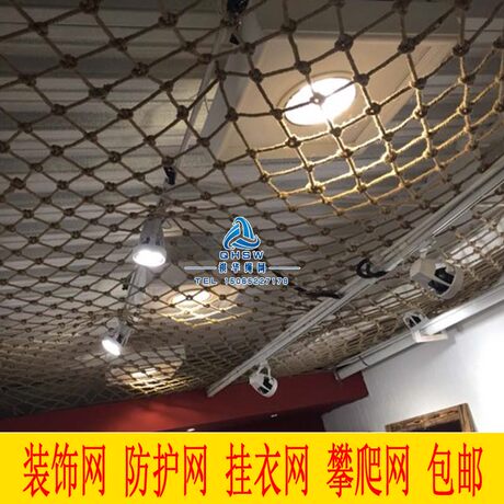 ceiling decoration creative personality ceiling retro hemp rope fishing net leisure bar hairdressing milk tea shop wall roof