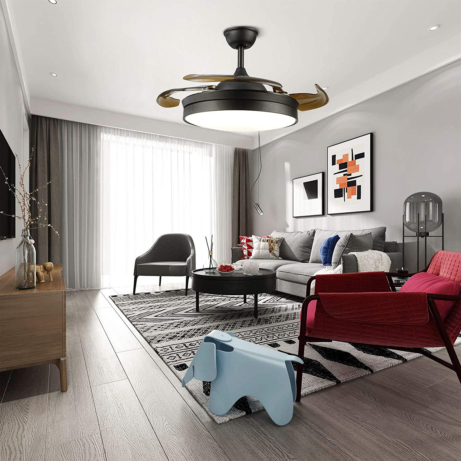 latitude run 36 kemarah 4 blade led smart retractable blades ceiling fan with remote control and light kit included wayfair