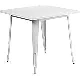amazon com flash furniture commercial grade 31 5 square white metal indoor outdoor bar height table garden outdoor