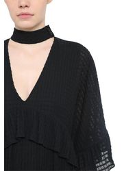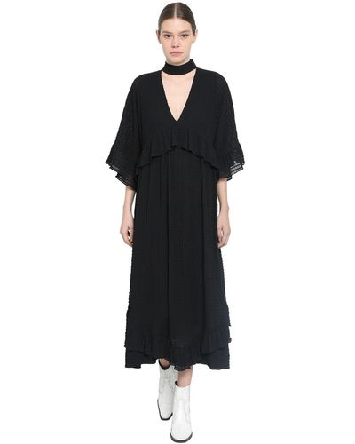 ganni light seersucker midi dress in black lyst