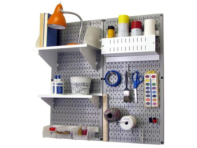 wall control pegboard hobby craft pegboard organizer storage kit with gray pegboard and white accessories newegg com