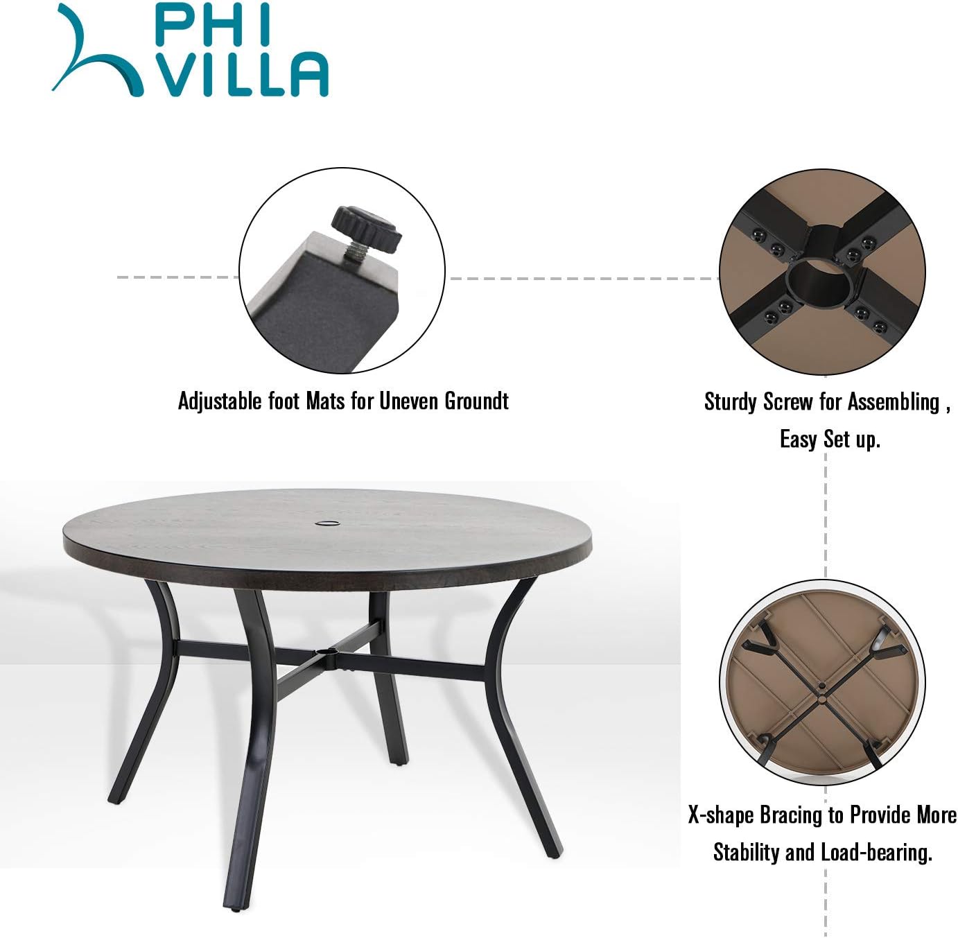black 1 97 umbrella hole phi villa 48 d metal round dining table wood like top patio dining table backyard bistro umbrella table outdoor furniture garden table patio furniture accessories patio lawn