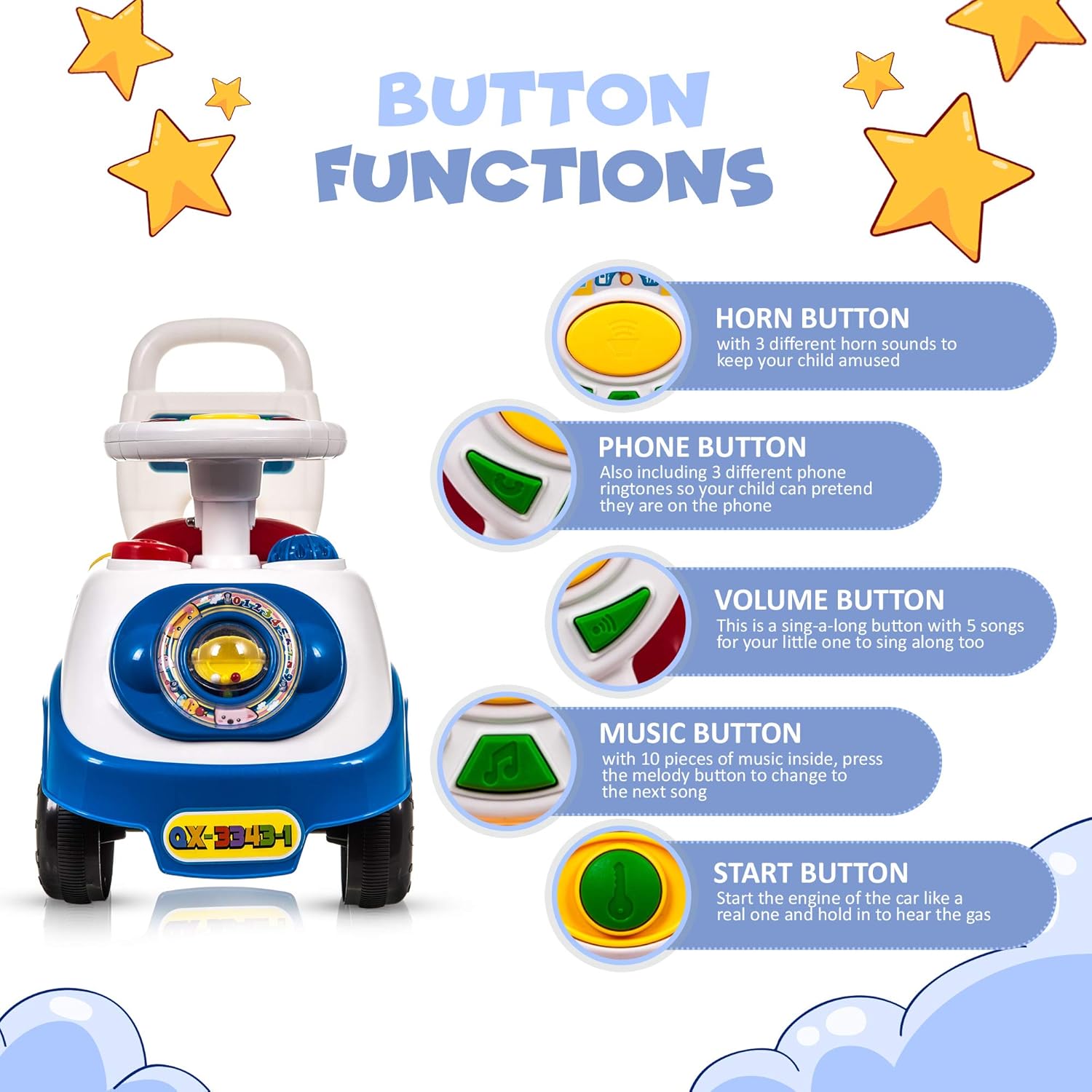 blue hillington new my first ride on and push along buggy car colourful first steps toddler walker learning toy with sounds and accessories push power ride ons accessories toys games cate org