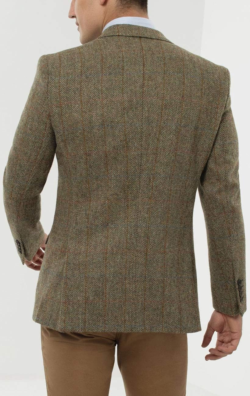 dobell scottish harris tweed mens green windowpane regular fit 100 wool notch lapel tweed jacket suit jackets clothing cate org